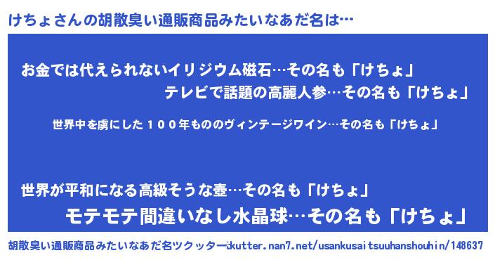 | 意味不明あだ名 | 『住所不定無職けちょ(13歳)』『自称けちょ』 |