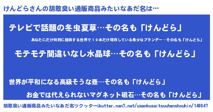 | 意味不明あだ名 | 『ペロリンけんどら』『自称けんどら』 |