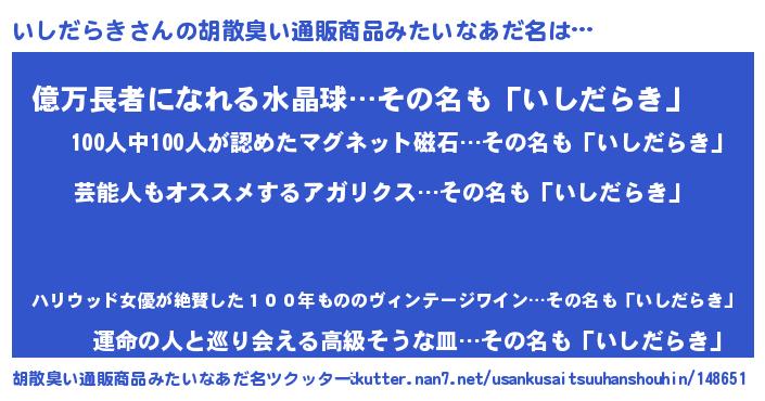 | 意味不明あだ名 | 『自称いしだらき』『ペロリンいしだらき』 |