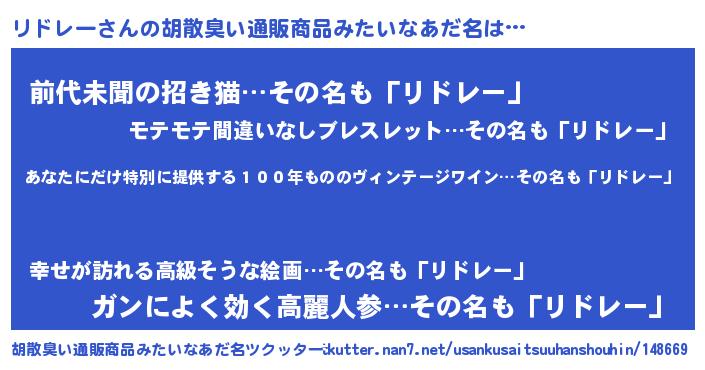 | ポケモン風あだ名 | 『リードイ』『リドゴンZ』『ゼニリド』 |