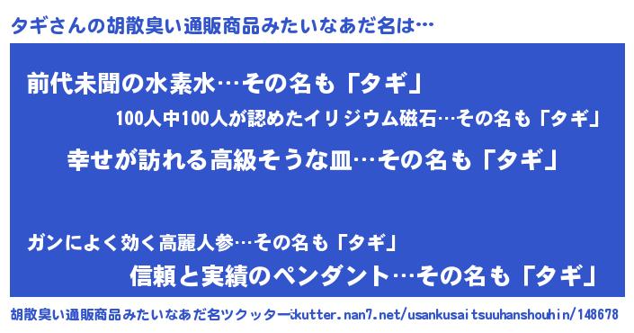 | ヒーロー風カッコイイあだ名 | 『ウルトラタギマン』『ネオタギ』 |