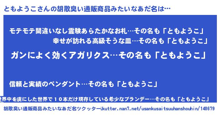 | ヘコむあだ名 | 『とももー』『豆乳』『とも太郎』 |