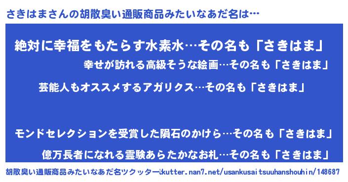 | 意味不明あだ名 | 『自称さきはま』『永久保存さきはま』 |