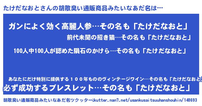 | 意味不明あだ名 | 『眠気覚ましガムたけだなおと味』 |