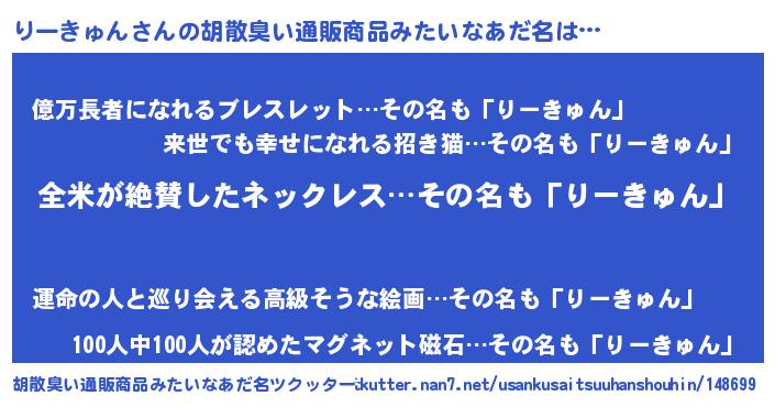 | 意味不明あだ名 | 『とにかく怪しいりーきゅん』 |