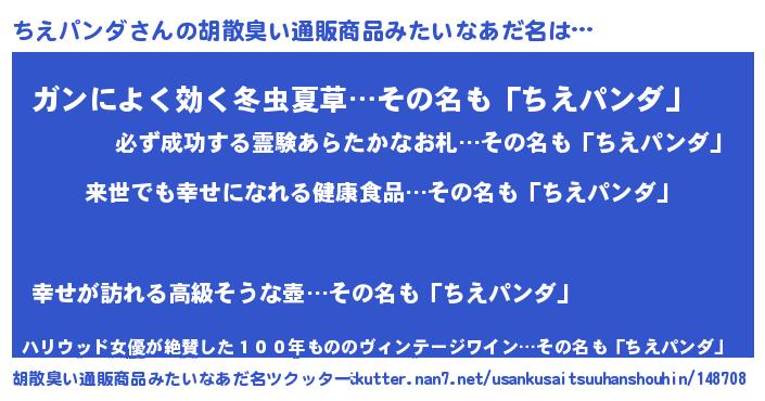 | 意味不明あだ名 | 『永久保存ちえパンダ』『自称ちえパンダ』 |