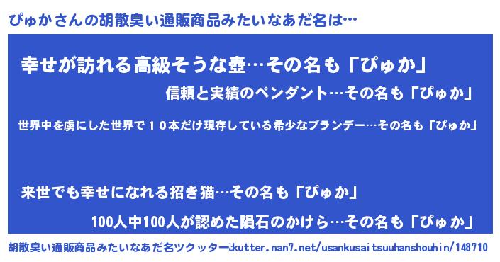| 意味不明あだ名 | 『住所不定無職ぴゅか(95歳)』 |