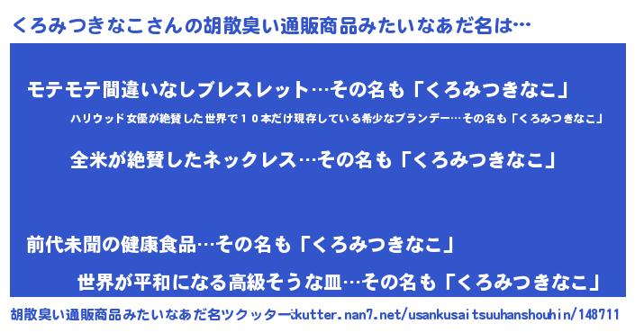 | 男性向けラノベタイトル風あだ名 | 『くろみつきなこに滅ぼされるだけの簡単なお仕事です』 |