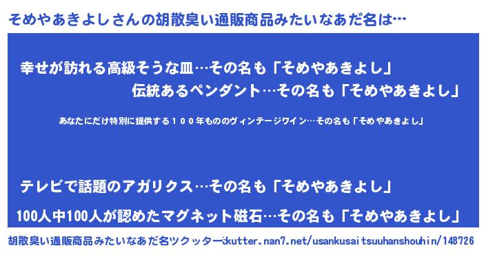 そめやあきよしさんの胡散臭い通販商品みたいなあだ名をツクッター!