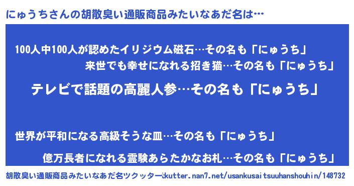 意味不明あだ名 | 『なめこ科にゅうち属』『自称にゅうち』 |