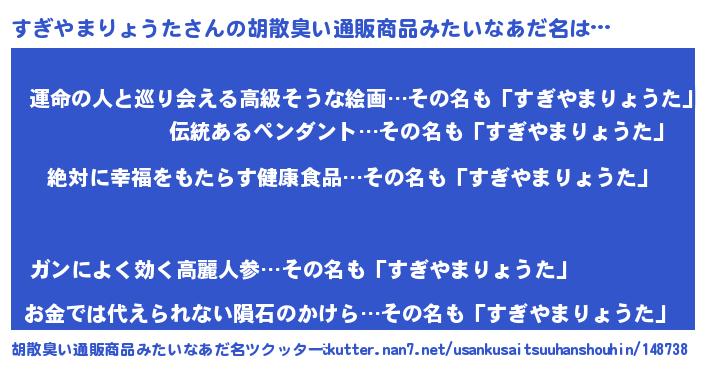 | 意味不明あだ名 | 『永久保存すぎやまりょうた』 |