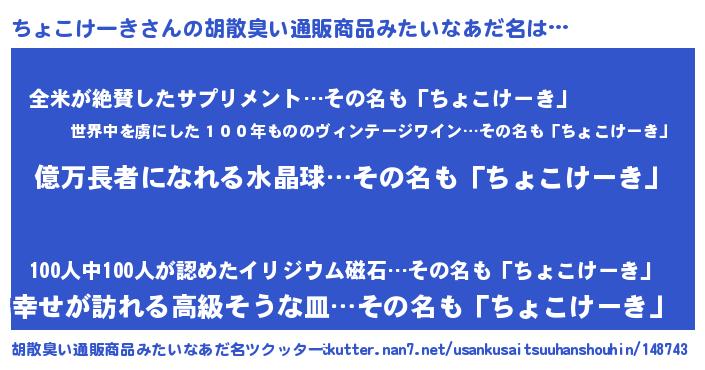 | 欧米人風あだ名 | 『マイケルちょこけーき』 |