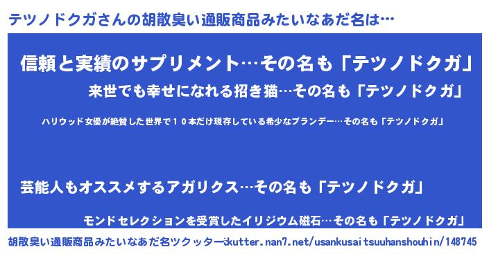 | ヒーロー風カッコイイあだ名 | 『仮面テツダー』『銀牙騎士テツ』 |