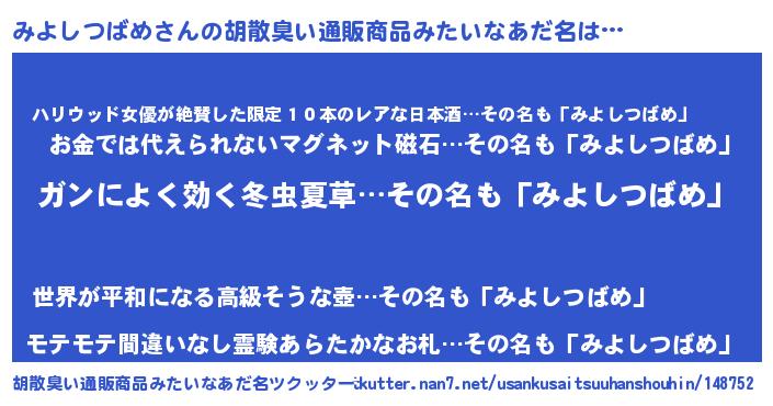 | 意味不明あだ名 | 『自称みよしつばめ』 |