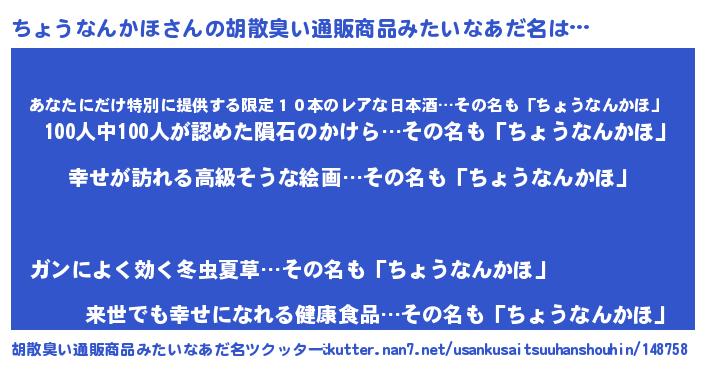 | 意味不明あだ名 | 『ちょうなんかほフォーエバー』 |