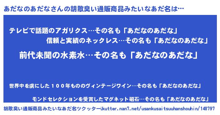 | ヘコむあだ名 | 『あだなのあだな(遠い目)』『あだっぺ』 |