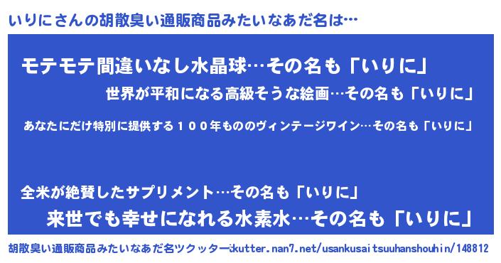 | 意味不明あだ名 | 『住所不定無職いりに(4歳)』 |