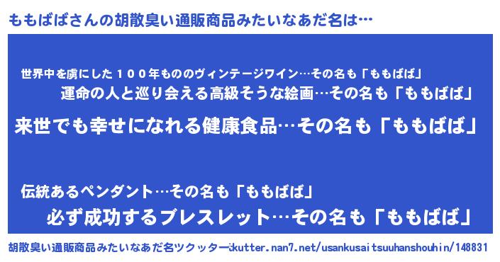 | 意味不明あだ名 | 『永久保存ももばば』『ペロリンももばば』 |