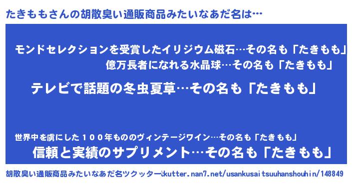 | 意味不明あだ名 | 『自称たきもも』『なめこ科たきもも属』 |