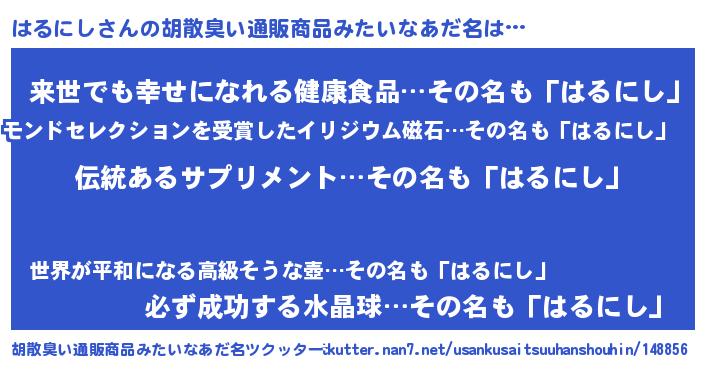 | 意味不明あだ名 | 『とにかく怪しいはるにし』 |