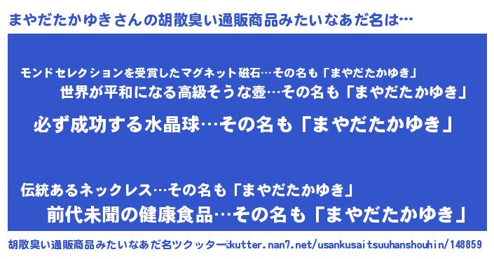 | 肩書あだ名 | 『まやだたかゆき店長』 |