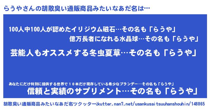 | ヒーロー風カッコイイあだ名 | 『最強戦士ラウヤ』『正義の使者らうや』 |