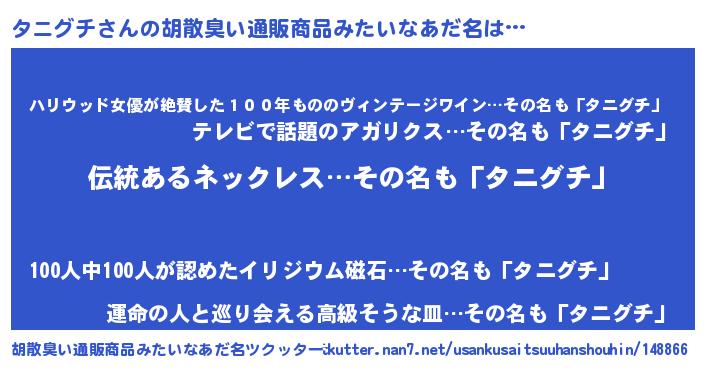 | 意味不明あだ名 | 『とにかく怪しいタニグチ』 |