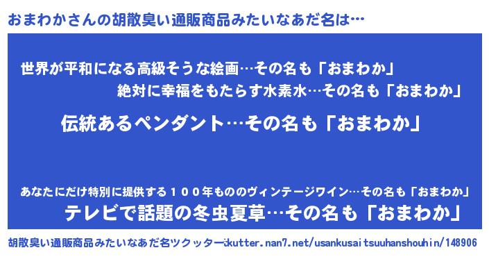 | 欧米人風あだ名 | 『ウサインおまわか』 |