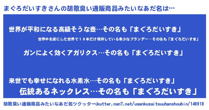 | 女子向けラノベタイトル風あだ名 | 『まぐろだいすきなんてお断りですっ。』 |