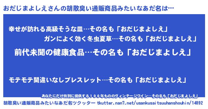 | 意味不明あだ名 | 『永久保存おだじまよしえ』 |