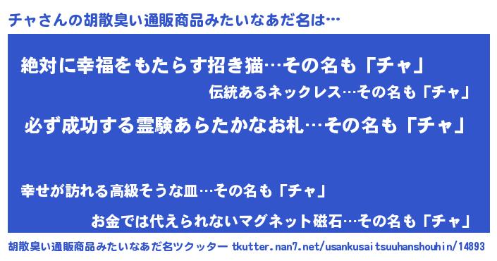 | ヘコむあだ名 | 『チャっふぃ~』『チャ(笑)』『豆乳』 |