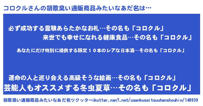 | 意味不明あだ名 | 『住所不定無職コロクル(59歳)』 |