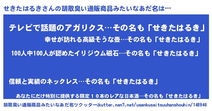 | 肩書あだ名 | 『せきたはるき助手』『せきたはるき閣下』 |