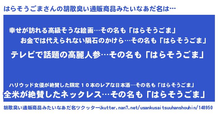 | ヒーロー風カッコイイあだ名 | 『最強戦士ハラソウゴマ』『炎刃騎士ハラ』 |