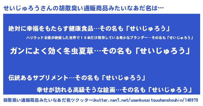 | 意味不明あだ名 | 『自称せいじゅろう』 |