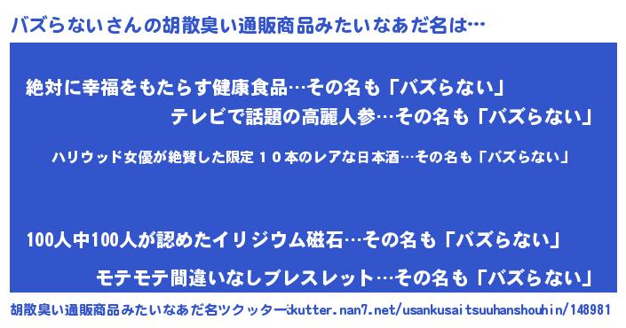 | ヘコむあだ名 | 『バズらない(笑)』『バズにゅー』 |