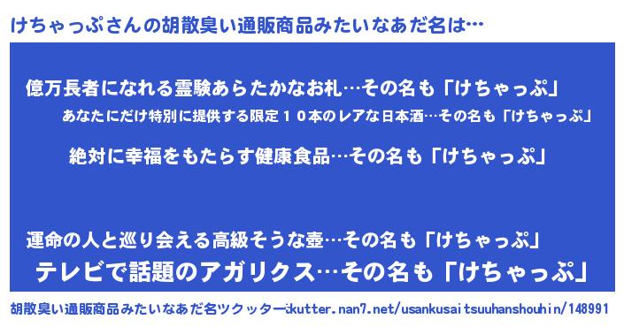 | ヘコむあだ名 | 『けちゃっぷ(爆)』『けちっふぃ~』 |