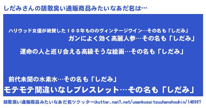 | 意味不明あだ名 | 『しだみフォーエバー』『ペロリンしだみ』 |
