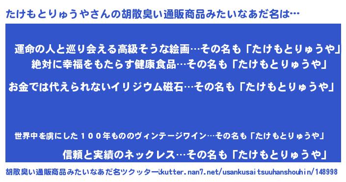 | 女子向けラノベタイトル風あだ名 | 『たけもとりゅうや恋絵巻』 |