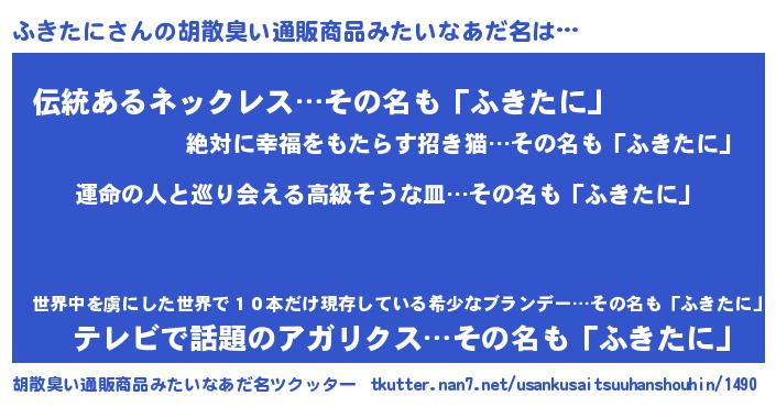 | 意味不明あだ名 | 『ふきたにフォーエバー』『自称ふきたに』 |