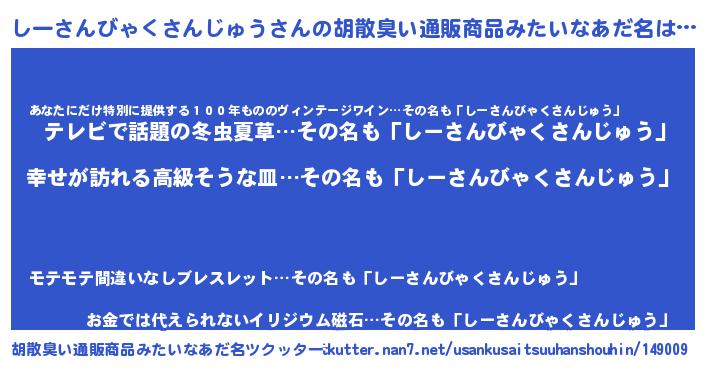 | ヒーロー風カッコイイあだ名 | 『ウルトラしーさんびゃくさんじゅうマン』 |