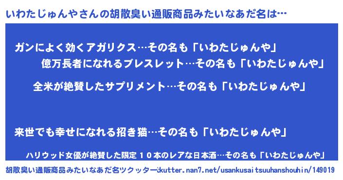 | 意味不明あだ名 | 『とにかく怪しいいわたじゅんや』 |