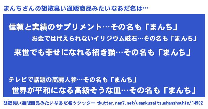 | ヘコむあだ名 | 『まんち(笑)』『まん太郎』『つくし』 |