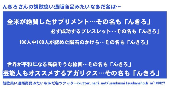 | 意味不明あだ名 | 『眠気覚ましガムんきろ味』『自称んきろ』 |