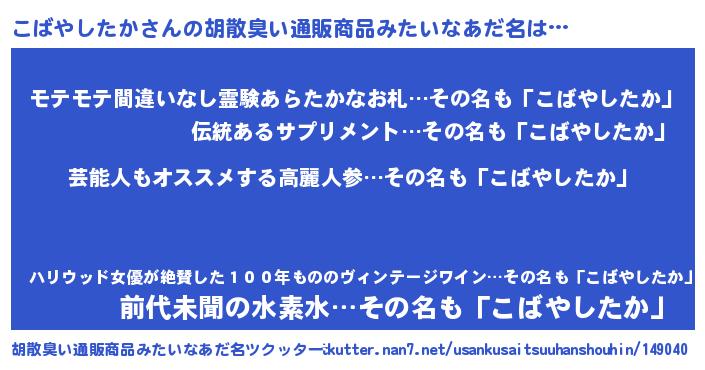 | ヘコむあだ名 | 『こばふぇ~』『こばやしたか(遠い目)』 |
