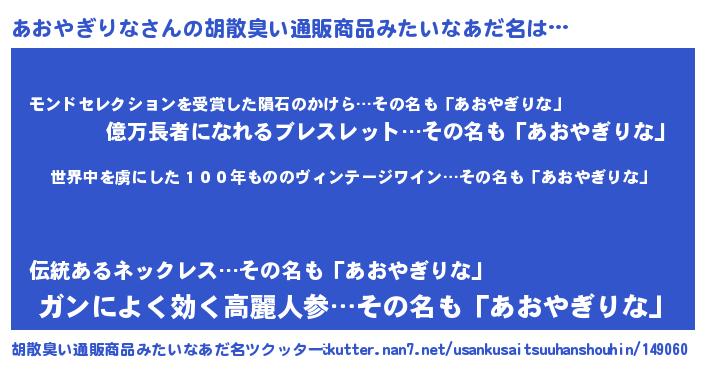 | 欧米人風あだ名 | 『ダレノガレあおやぎりな』 |