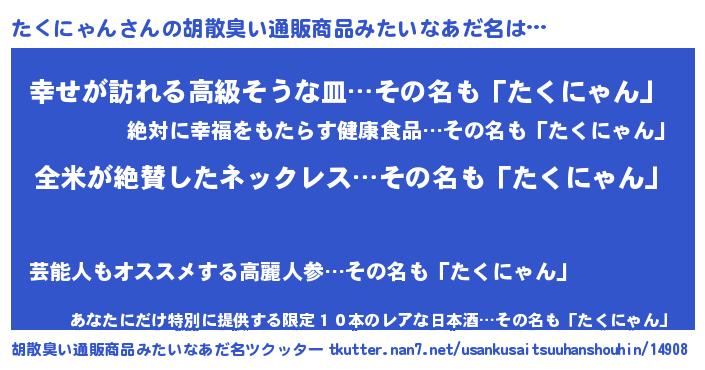 | 意味不明あだ名 | 『つくし科たくにゃん属』 |