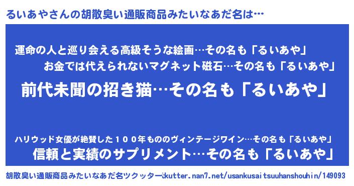 | 意味不明あだ名 | 『永久保存るいあや』 |