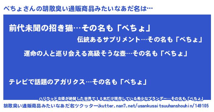 | 意味不明あだ名 | 『べちょフォーエバー』『永久保存べちょ』 |
