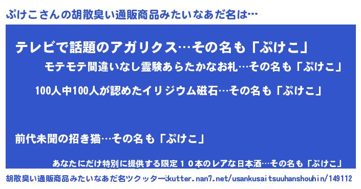 | 女子向けラノベタイトル風あだ名 | 『ぷけこ夫妻のなれそめ』『闇のぷけこ』 |